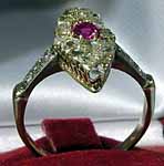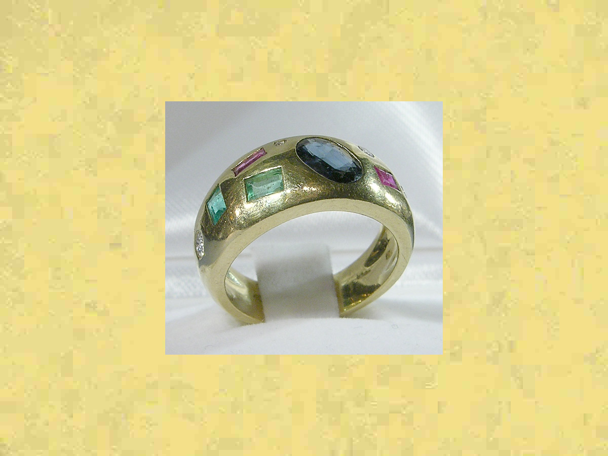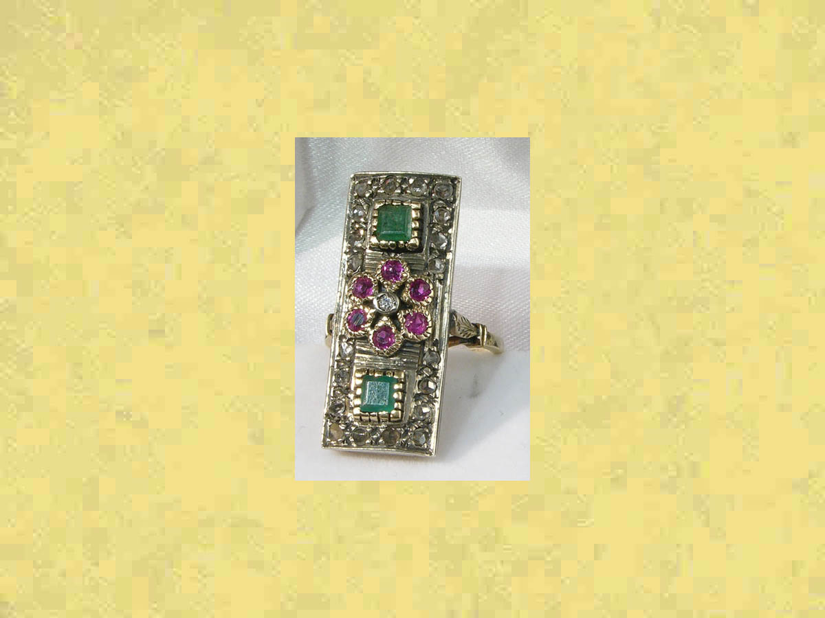szmaragdy 2 szt, m ~ 0,4 ct, rubiny 6 szt