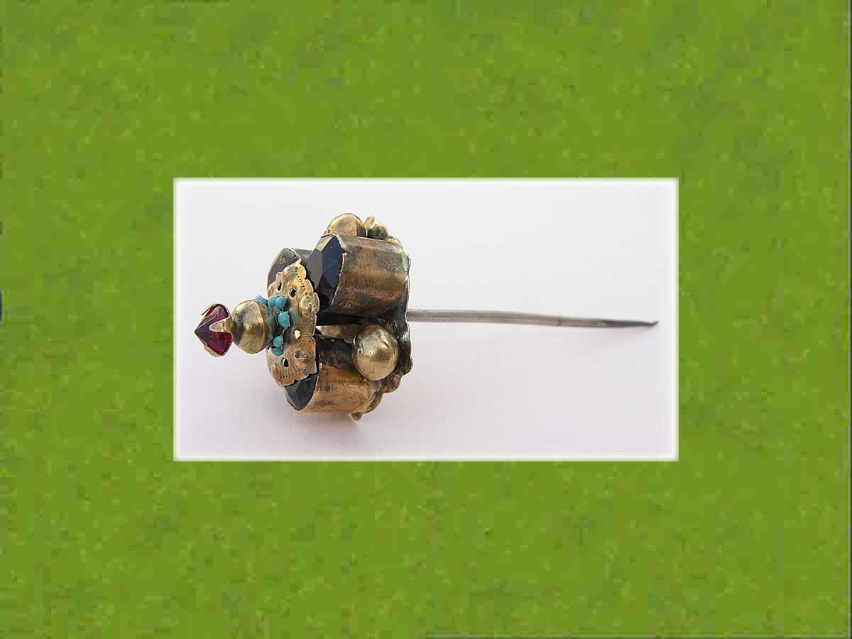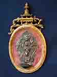 srebro złocone, szkło, emalie, śr ok 3 cm